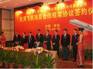 2010年4月15日上午,“陜西省人民政府與中國商用飛機有限責任公司民用飛機項目合作框架協議簽約儀式”在陜西西安舉行,我公司承擔了此次會議的同聲傳譯任務,譯員袁潔以出色的表現受到主辦方及到場嘉賓的一致好評!